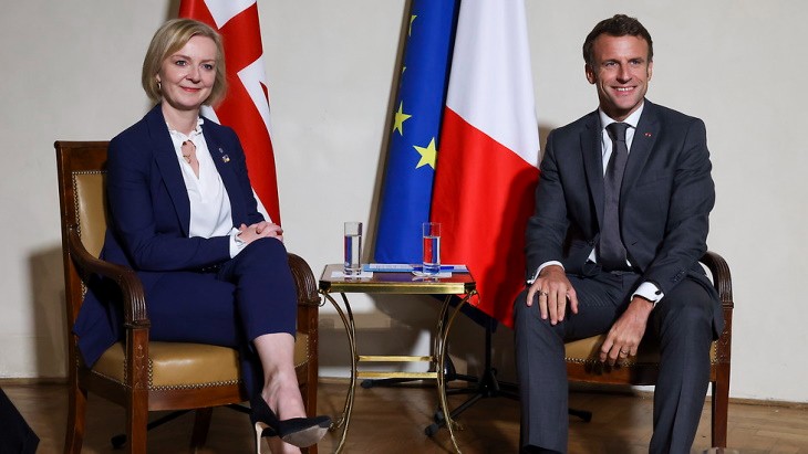 利兹-特拉斯和埃马纽埃尔-马克龙在布拉格会面