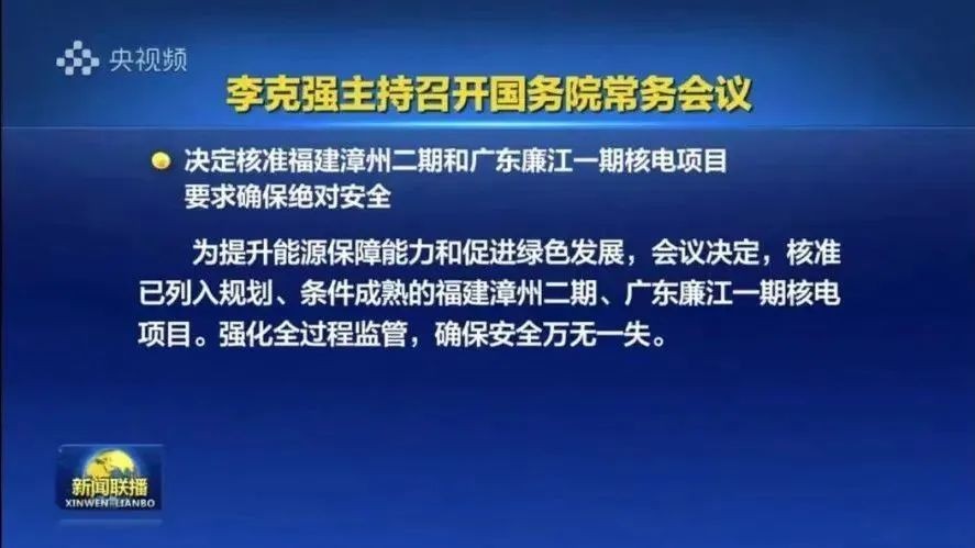 9月13日召开的国务院常务会议指出,为提升能源保障能力和促进绿色发展,会议决定,核准已列入规划、条件成熟的福建漳州二期、广东廉江一期核电项目。强化全过程监管,确保安全万无一失。福建漳州二期、广东廉江一期核电项目分别属于中核集团和国家电投集团,各有两台核电机组。漳州二期采用“华龙一号”三代核电技术,廉江一期则采用CAP1000三代核电技术。4台核电机组总投资高达800亿元。到目前为止,今年国常会已经核准了5个核电项目、10台新机组。这是继2008年14台机组获批之后,中国核准核电项目和机组最多的一年。核能行业再次进入大发展阶段正在逐步成为现实。