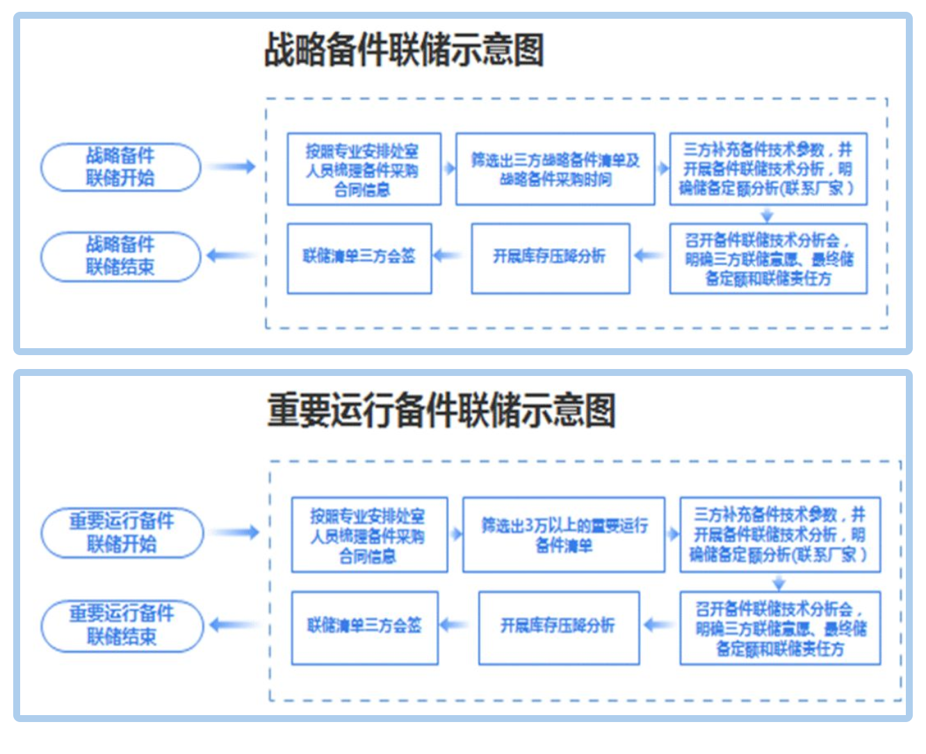 从备件采购阶段落实备件联储和备件审查,实现联储源头管控。同行电站备件联储模式是联储各方完成备件采购后,根据库存备件的型号、规格、数量,确定需要联储的备件种类和数量。漳州能源通过提“早”介入设备采购阶段,在设备采购准备阶段,牵头联储工作组成员单位对设备备件进行联储技术分析和识别,尤其针对使用概率低、价格高、制造周期长、故障后对机组安全可靠运行影响大的备件,提前开展联储分析确认,保证联储利益最大化。