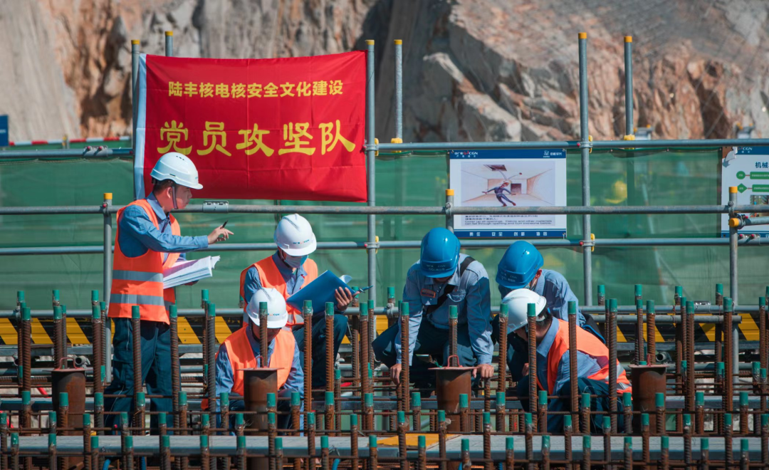 中广核陆丰核电有限公司坚持“安全第一,质量第一,追求卓越”的基本原则,以推动项目“急难险重”任务为目标,相继成立“陆丰核电5、6号机组连续施工党员攻坚队”“工程管理程序提升优化党员攻坚队”等20个党员攻坚队,党旗在一线高高飘扬。