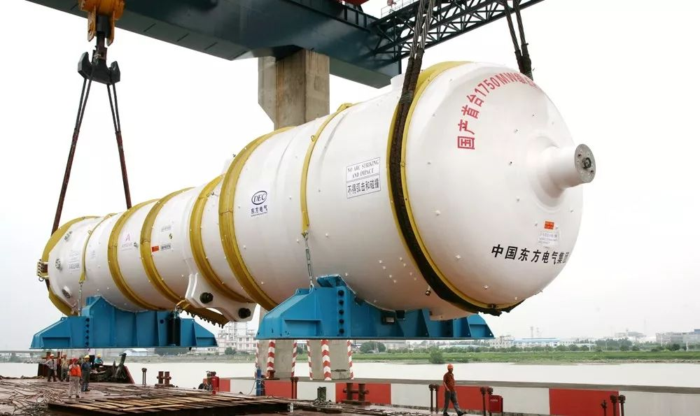 台山核电站是我国首座采用EPR三代核电技术建设的大型商用核电站,是中法两国迄今为止在核能领域的最大合作项目。东方电气集团为该电站提供两台核能汽轮发电机组和蒸汽发生器、反应堆压力容器、稳压器等核电主设备。台山1、2号核能发电机单机容量高达1750兆瓦,是目前世界最大单机容量核能发电机。同时,提供的汽轮机、汽水分离再热器、反应堆压力容器、蒸汽发生器均为世界单机容量最大的核电设备。台山核电1号机组于2018年12月投运,2号机组于2019年9月投运。