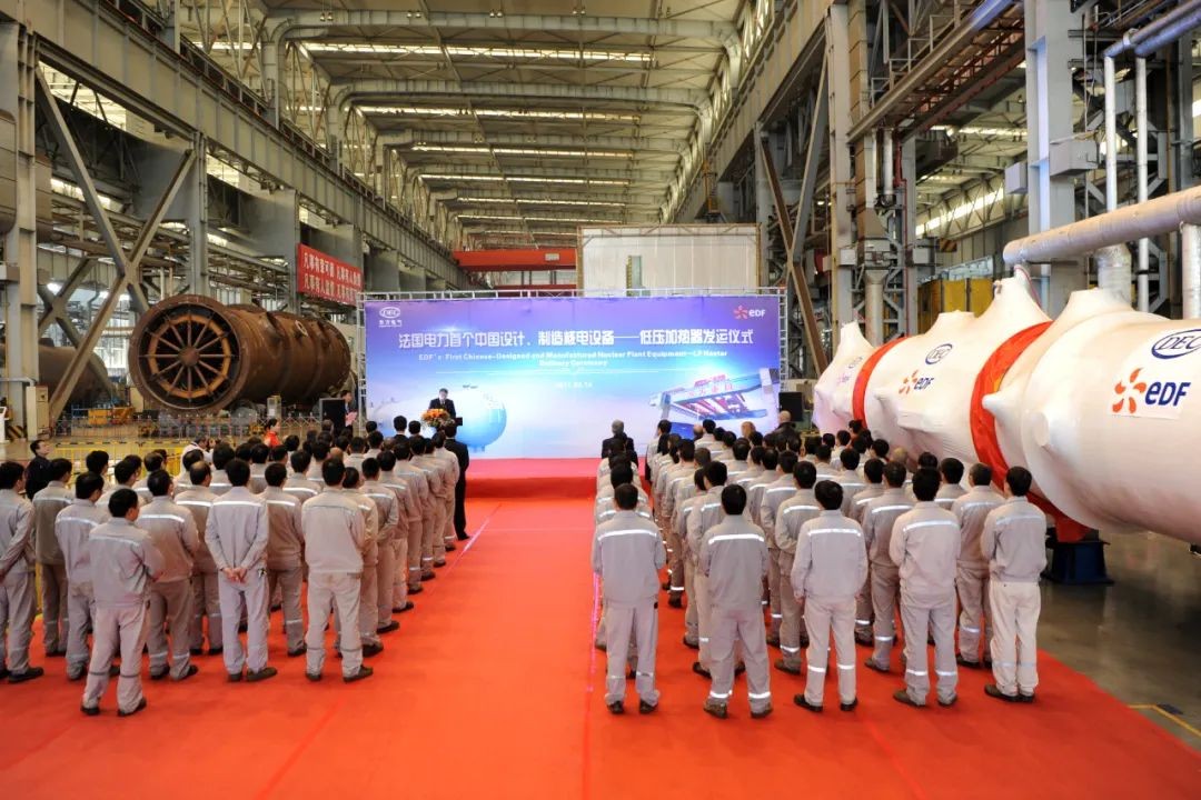 2017年2月14日,在东方电气核电装备制造和出海口基地,中国首台出口欧洲的核电低压加热器发运。这是法国电力集团实施核电全球化战略采购后的第一个投向中国的采购订单,东方电气集团通过该项目掌握了欧洲压力容器指令及标准,成为法国电力集团在中国确立的首家核电产品合格供应商,这也是中国核电走向欧洲市场的重要标志。此外,东方电气集团积极配合中核、中广核、国家电投等企业集团,以精益制造、优质服务及诚信透明的核安全文化等优势推进中国核电“走出去”。
