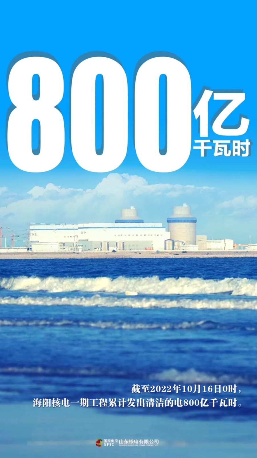 热烈祝贺党的二十大胜利召开!截至今日0时海阳核电一期工程累计发出清洁的电800亿千瓦时