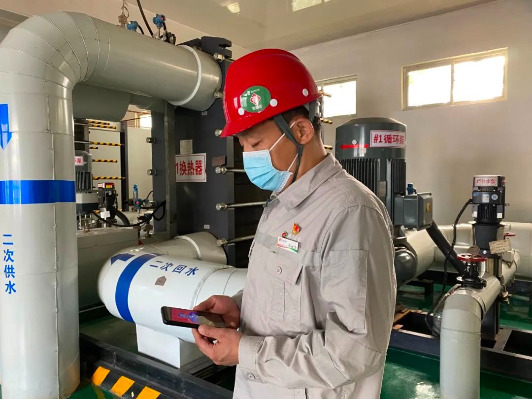 河北公司(雄安公司)热力公司运行专工毕振华在柏南换热站收看党的二十大开幕会。