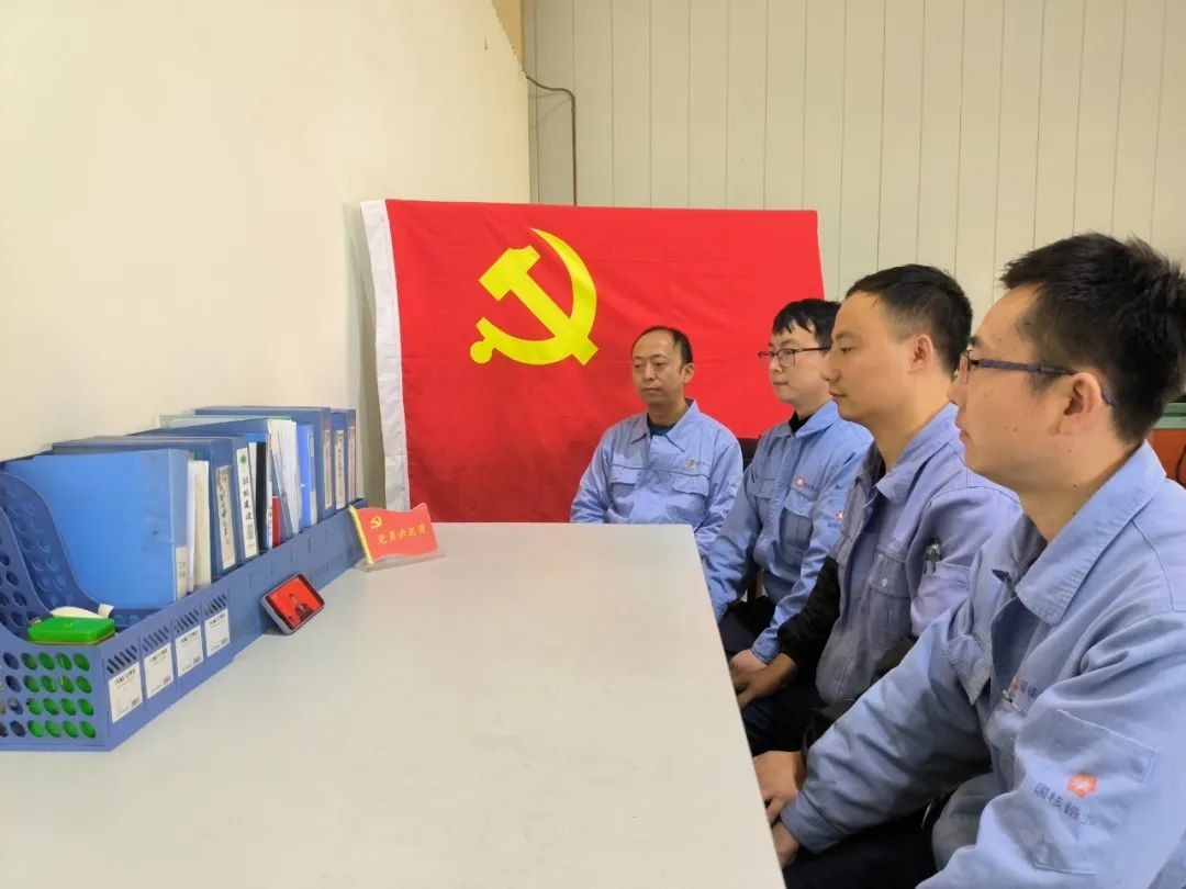 国核锆业员工肖争伟、姬敏杰、郭亚杰、李晓斌收看党的二十大开幕会。