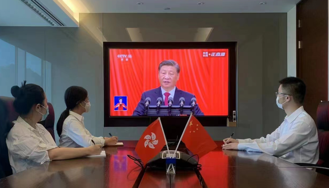 香港财资公司员工收看党的二十大开幕会。