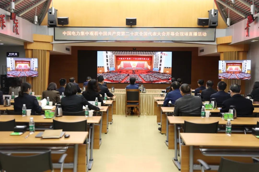 中国电力党员干部、员工收看党的二十大开幕会。