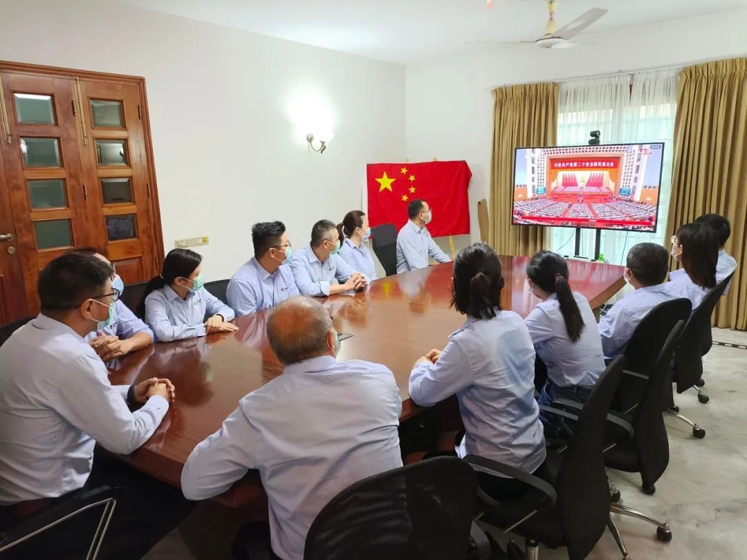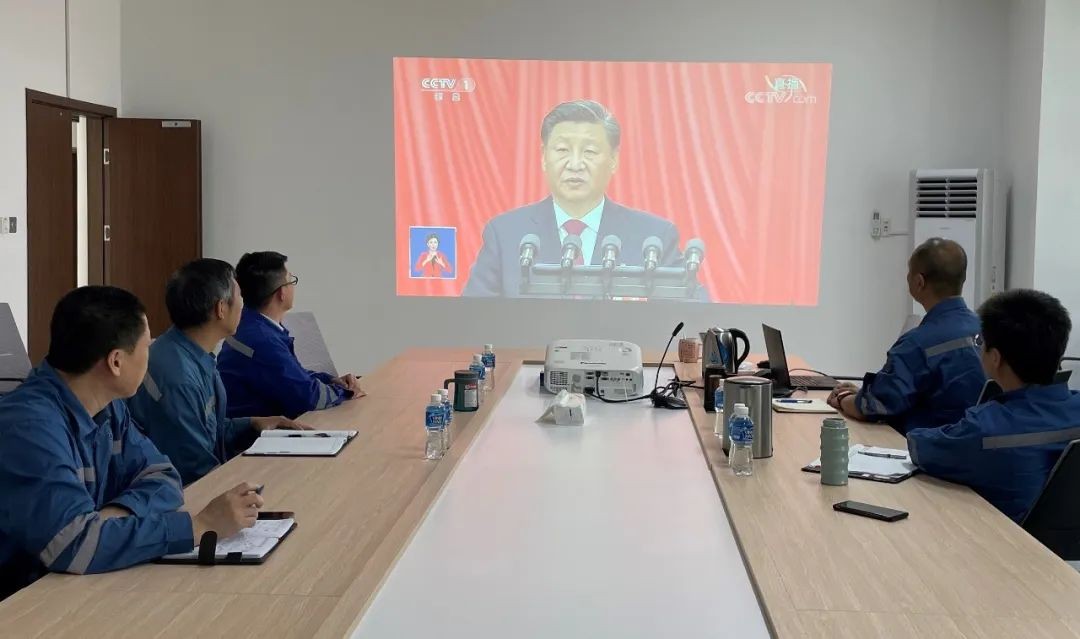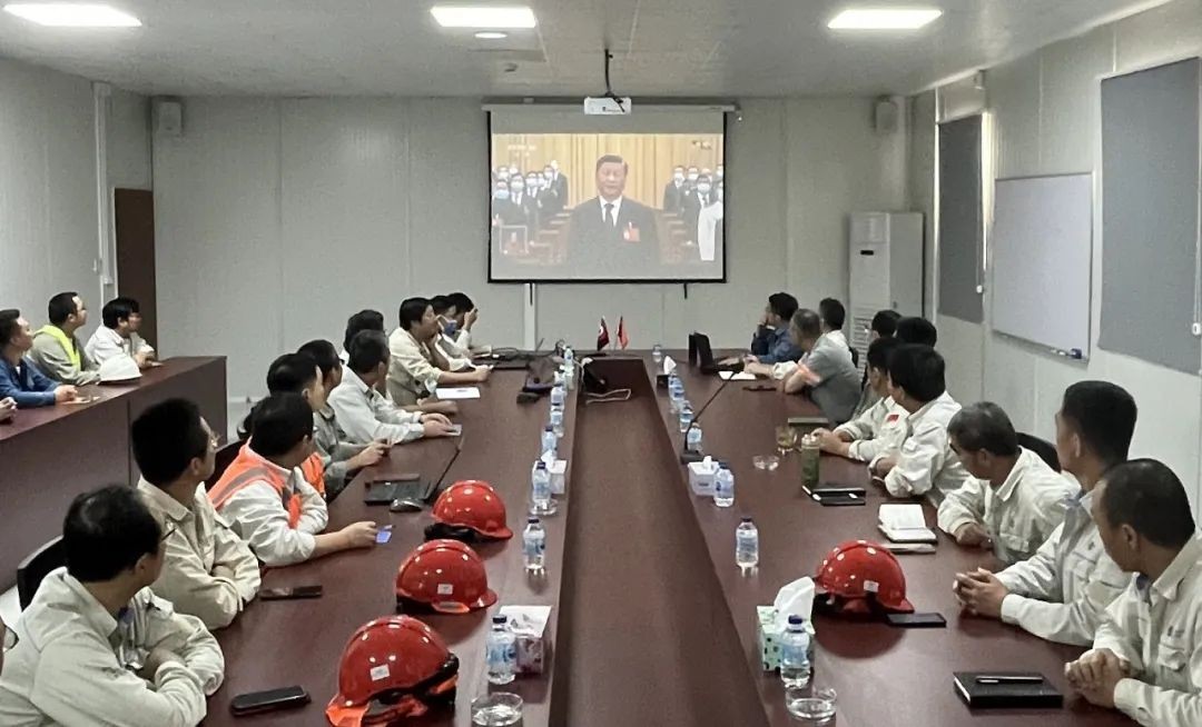 巴基斯坦中电胡布干部员工收看党的二十大开幕会。