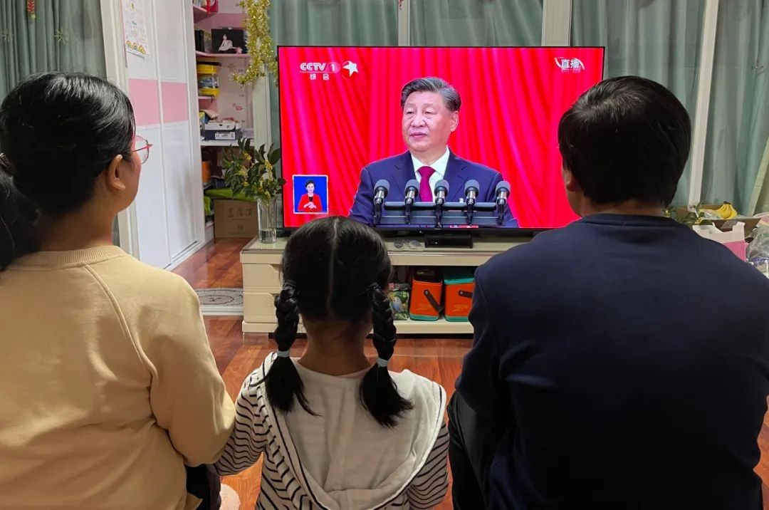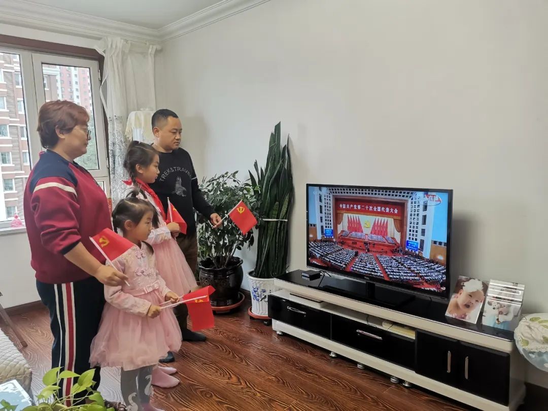 国核浙能员工樊迎春同家人一道,收看党的二十大开幕会,带孩子们上了一堂高质量的爱国主义教育课。