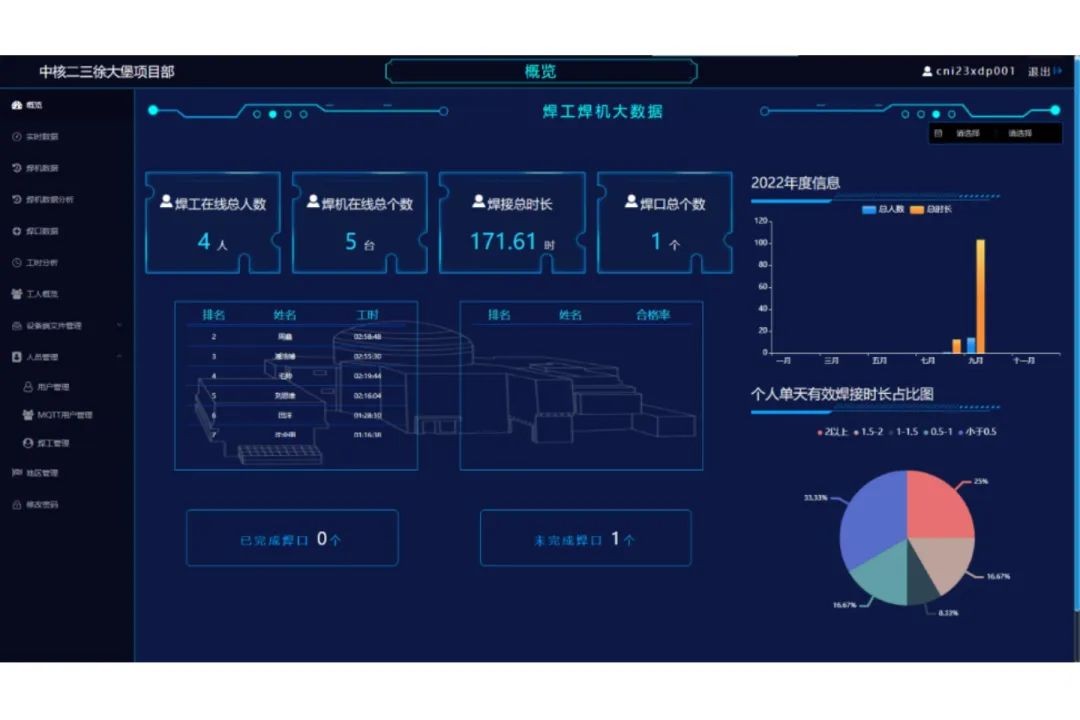 围绕焊接过程的精细化管理,全面推进焊接物联网系统的应用,目前已有19台数字化智能焊机全部投入使用。为完成焊接物联网系统的全面运行应用,积极在焊工培训及管道支架预制车间内试运行,焊工使用数字化智能焊机进行刷卡、焊接,组织技术人员在焊接物联网系统可视化概览界面中,对焊工的焊接工时进行统计,进一步提升焊工的焊接工时及焊接效率,实现焊接工艺的智能化控制。