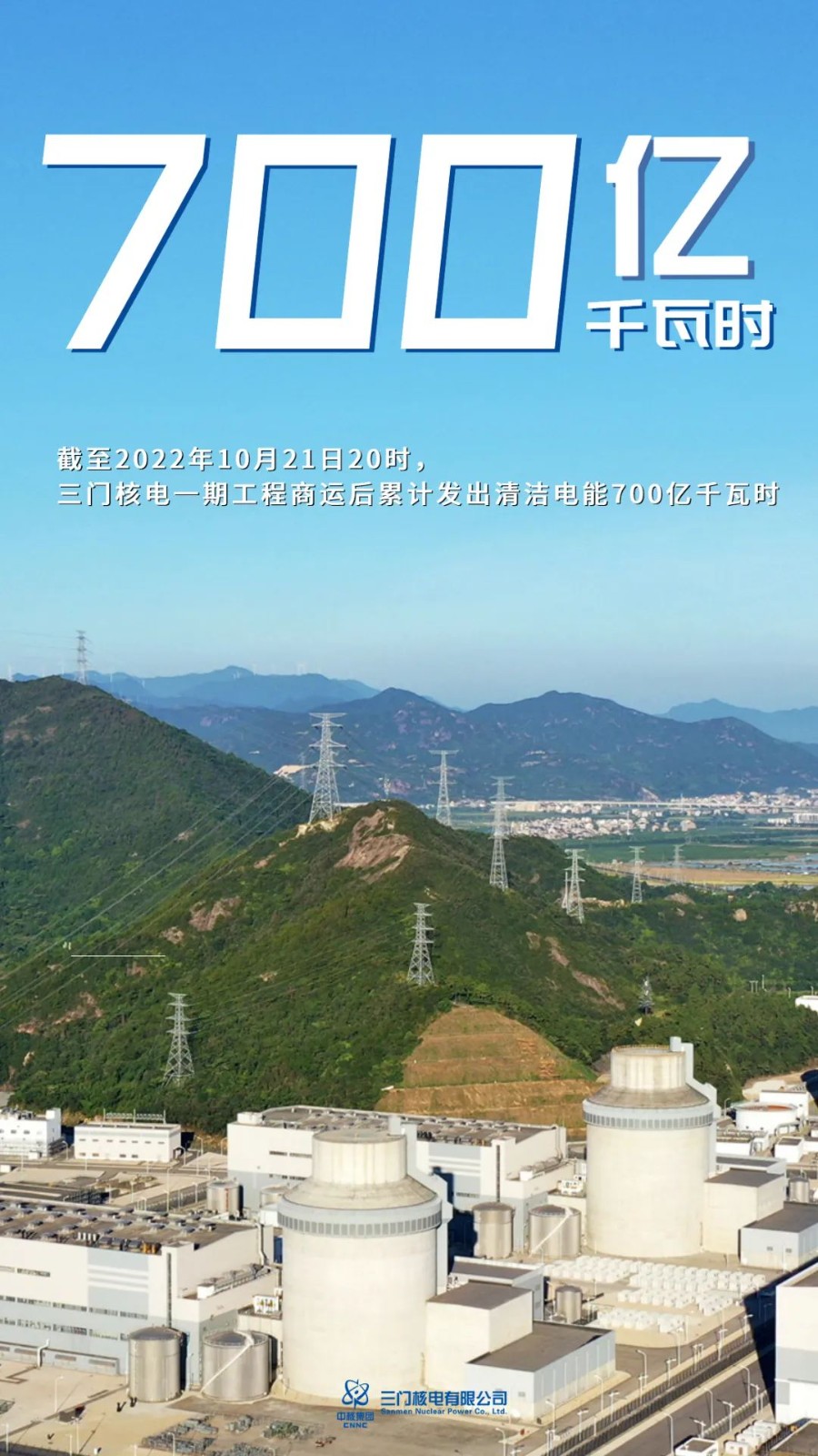 截至昨日20时,三门核电一期工程商运后累计发出清洁电能700亿千瓦时!