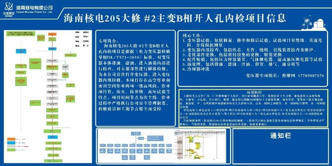 2022年10月22日,2号机组主变停役,标志着海南核电205大修电气作业的全面开展,与此同时,主变检修专项正式启动。