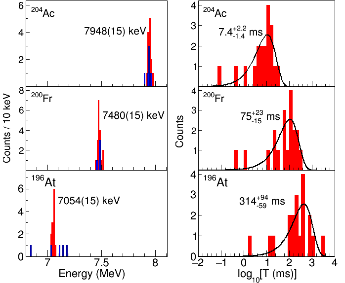 图 锕-204及其衰变后的子核、孙核发射α粒子的能量与时间分布。图| 黄明辉