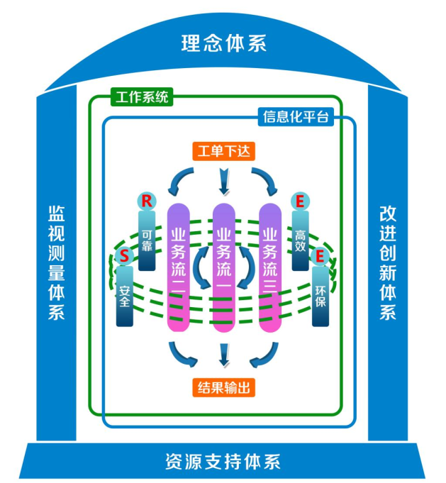 该模式有效运用卓越绩效、精益管理、两化融合、系统思维、互联网思维等先进管理理念和方法,通过首创SREE质量法则,从理念层面统一了全员的质量意识、规范了全员的质量行为,通过标准化工单的精细化管理,从管理工具层面有效解决多流程管理“链式反应”中的堵点、痛点和难点,打出精细化管理组合拳。