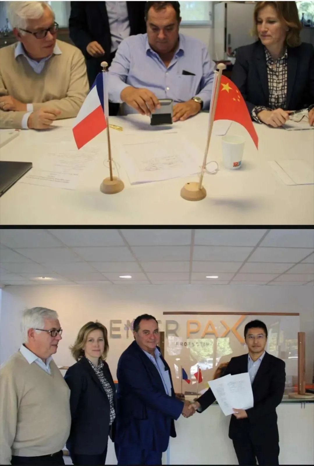 中核高能副总经理程丹主持会议。中核高能总经理周强与法国Lemer Pax公司主席PIERRE-MARIE LEMER分别代表双方在合作协议上签字。中核高能党委书记尹红玉致欢迎词。双方公司主要领导和相关部门负责同志参加了此次签约活动。