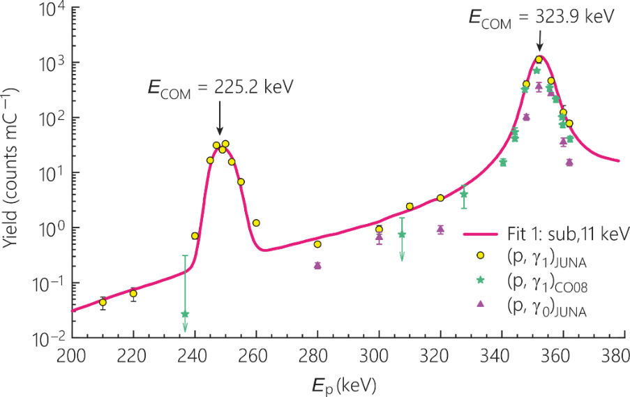 JUNA团队测量的19F(p,γ)20Ne反应的产额曲线