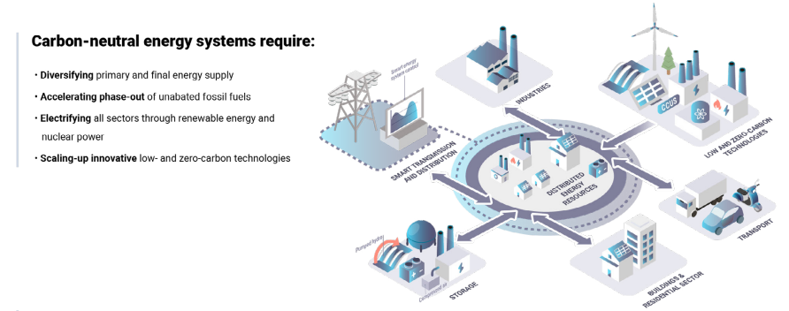 这些行动需要从现在开始,并最大限度地利用所有低碳和零碳技术。为了实现2050年碳中和,各国政府必须提高对所有低碳和零碳技术优点的认识,制定支持碳中和的政策框架,创造一个公平的竞争环境,为能源系统的清洁低碳公正转型提供资金。
