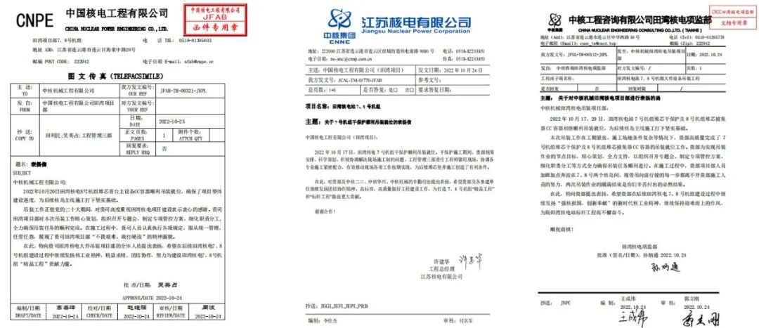 近日,中核机械工程田湾核电吊装项目部同时收到江苏核电有限公司、中国核电工程有限公司田湾项目部、中核咨询田湾核电项监部三家单位的表扬信,信中对中核机械工程田湾项目部所展现出的工作作风和敬业精神表示高度的肯定。