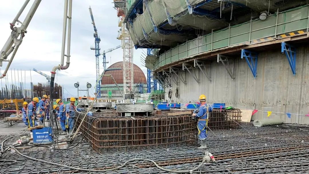 奋进新征程,建功新时代。自漳州核电1号机组电气厂房施工以来,漳州项目部以精细化管理为契机,联合漳州能源、中核咨询、施工单位组成核岛厂房攻坚小组,每天在现场召开经验交流会,从技术策划分析、施工工序优化、施工资源投入、现场资源协调等方面入手,重点落实各项优化措施的落实,克服了近期新冠疫情和闽南地区高温等极端天气的影响,最终实现了主体结构顺利封顶,为后续漳州核电1号机组主控室可用、主蒸汽及主给水管廊等安装工作奠定了坚实基础。