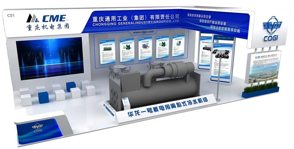 本次展会重通集团将携其研发制造的“华龙一号”核电专用离心式冷水机组”展品重磅亮相15号馆C01展台。 “华龙一号”核电专用离心式冷水机组是核岛项目中VWS系统(中央冷冻水系统)的核心制冷设备,是暖通空调(HVAC)类设备在整个核岛中最重要的设备,为核岛发热设备和工作人员提供了生产安全性和工作环境舒适性的可靠保障,是关系到核电站安全连续生产的关键设备,该机组各项技术达到了国际先进水平,充分满足了核电站的特殊使用要求。