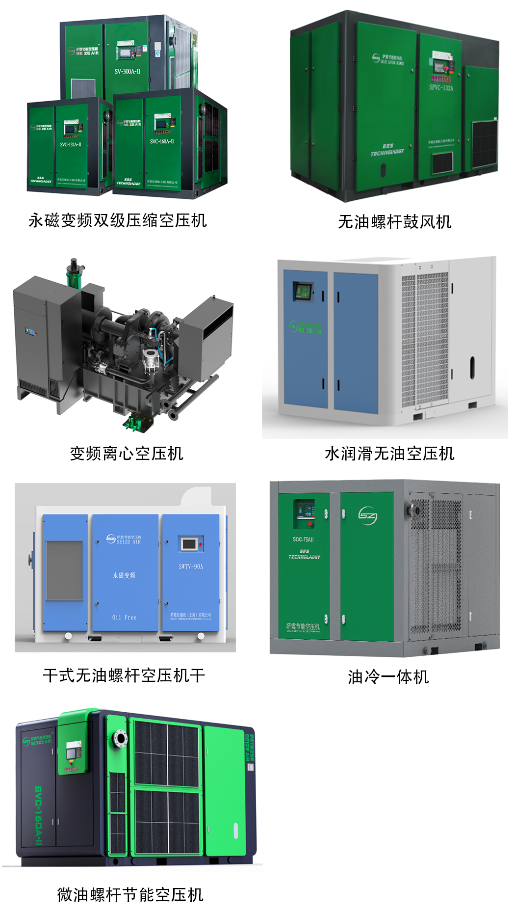 萨震节能空压机致力于节能创新,在2014年成功研发双级压缩+永磁/节能变频+压力定制+双变频+系统放大+余热回收为一体的节能空压机,解决了用户高能耗的痛点。主要产品系列有:微油节能空压机、无油空压机、离心空压机、磁悬浮节能空压机等。