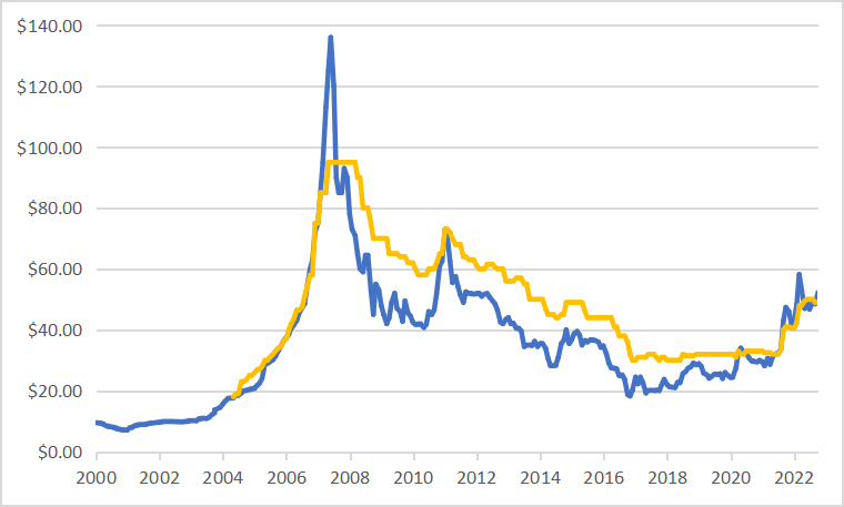 10月31日,黄饼公司发布了截至2022年9月30日的第三季度运营更新。该公司净资产预估为每股4.5英镑或9.206亿美元,包括以当期现货价48.25美元/磅计值的1881万磅U3O8,以及现金和其他流动资产及负债净值1320万美元。相较于2022年6月30日的净资产9.497亿美元,黄饼公司持有的U3O8价值在2022年9月30日下降了4%,主要是由于现货价格在2022年第三季度下降了4.5%,从50.50美元/磅降到每磅48.25美元/磅。