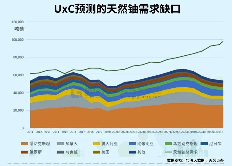 UxC曾统计,到2030年,全球现役矿山将大规模减产退役,资源面临枯竭危险。预计全球铀供应将在2025年下降15%,到2030年下降50%。