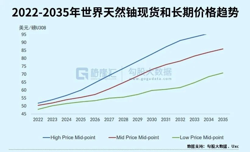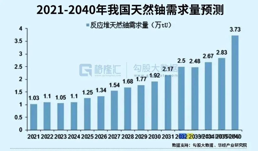 去年,世界核能协会曾预测,全球铀需求将从2021年的1.62亿磅上涨至2030年的2.06亿磅,到2040年进一步攀升至2.92亿磅。