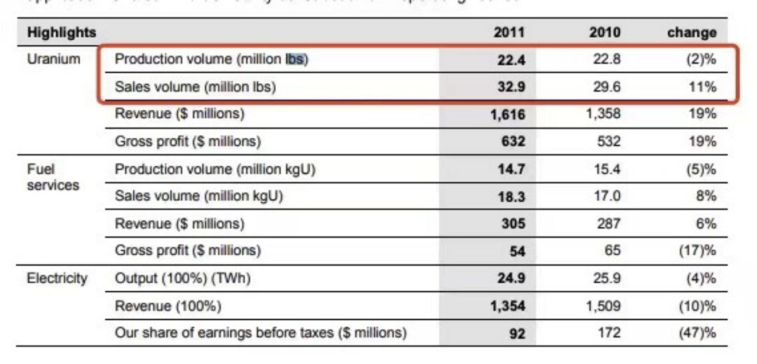 据其年报,在2010和2011年,也就是上一轮铀矿牛市末期,产量和销量相差并不大。但到最近几年,其销量却远远大于产量。