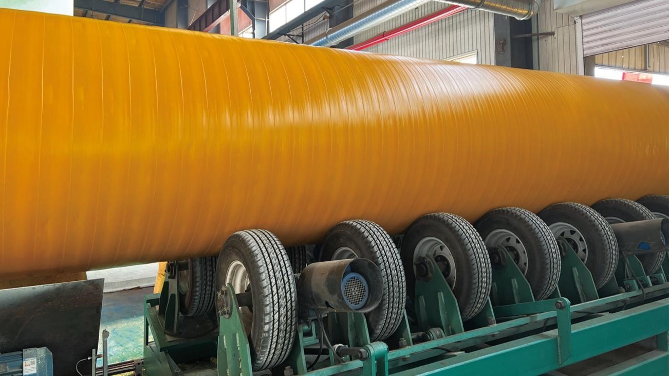 公司于2003年引进了当时国内唯一的一条、目前也是先进水平的芬兰凯威赫公司的RA300型聚氨酯发泡总成保温管自动生产线,此设备为欧洲区域集中供热专家KWH公司生产,为我国带来了国外先进的保温管生产和施工经验。作为国内首个引进芬兰直埋保温管道制造设备与生产技术的老牌预制直埋管道制造企业,公司经多年发展已于2020年将原有的生产设备全部更新换代,现共有国内一流的自动化生产设备36条(台),自动化机械程度达到97%以上,年生产能力可达3000km。目前,本公司的产品已经多领域广泛应用,以超大口径的聚氨酯喷涂聚乙烯缠绕保温管道、硬质聚氨酯喷涂聚乙烯缠绕球墨铸铁直埋保温管及其相关管路配套附件等为主产品,产品型号覆盖目前国内生产应用中的所有管径。