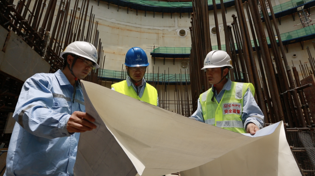▲ 华龙一号总师邢继(中)在现场调研建设进展幸运的是,中国发展核电的大方向没有变。“华龙一号”总设计师邢继说,重整旗鼓后,他们讨论出“华龙一号”设计方案,要建造世界上“安全标准最高的核电站”。