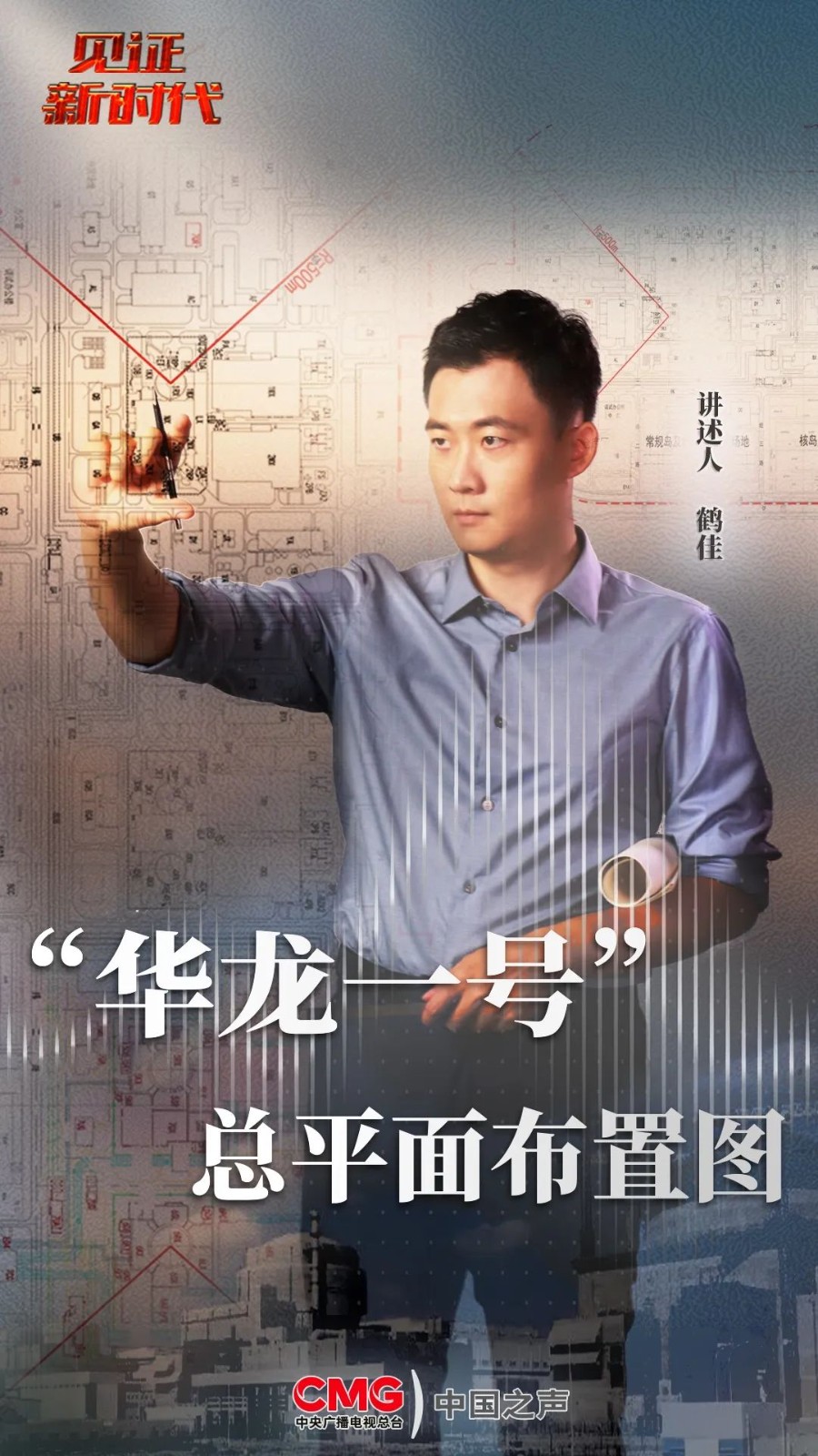 ▲ 听主持人鹤佳讲述“华龙一号”总平面布置图背后的故事
