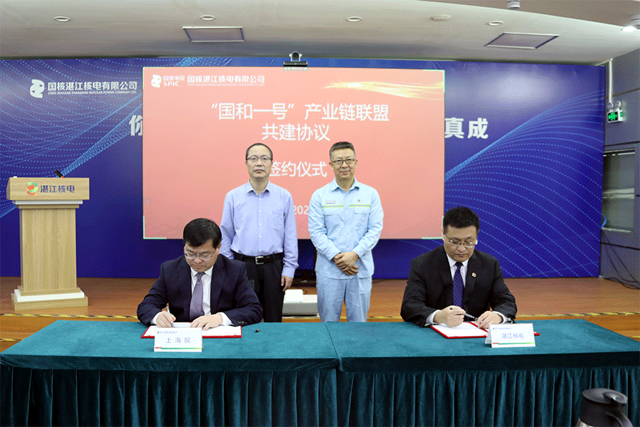 会上,上海核工院与湛江核电、国核设备、江苏电力装备、上海凯泉四家单位签署了“国和一号”产业链联盟共建协议,联盟成员企业增至38家。同时,相关参建单位签订了广东廉江核电项目土建安装施工、设备制造供货、电站运行维护等主要建安施工及设备采购合同20项。