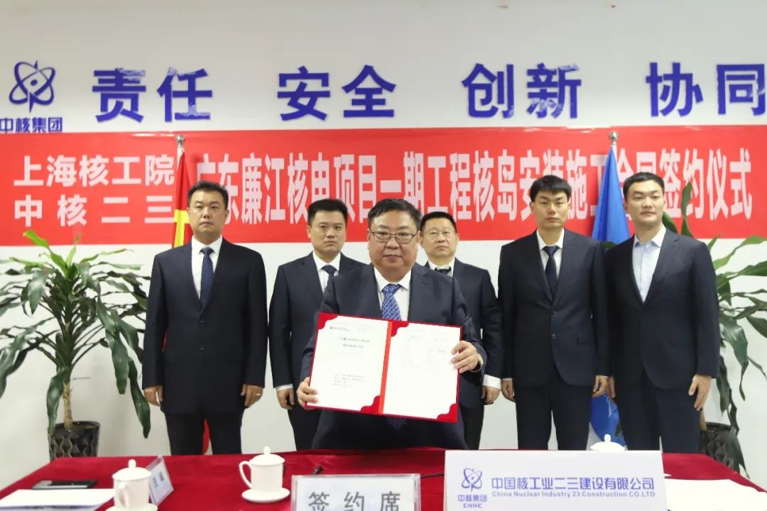 11月24日,在广东廉江核电项目一期工程工作推进会暨合同签约仪式上,中核二三与上海核工程研究设计院有限公司(简称上海核工院)线上签署了广东廉江核电项目一期工程核岛安装施工合同,标志着中核二三正式承接广东廉江核电项目一期核岛安装施工工程。上海核工院副总经理兼安全总监张守龙,中核二三董事长、党委书记李启彬代表双方签订合同。