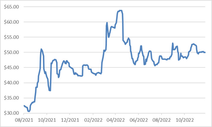 2021年8月-2022年11月铀价