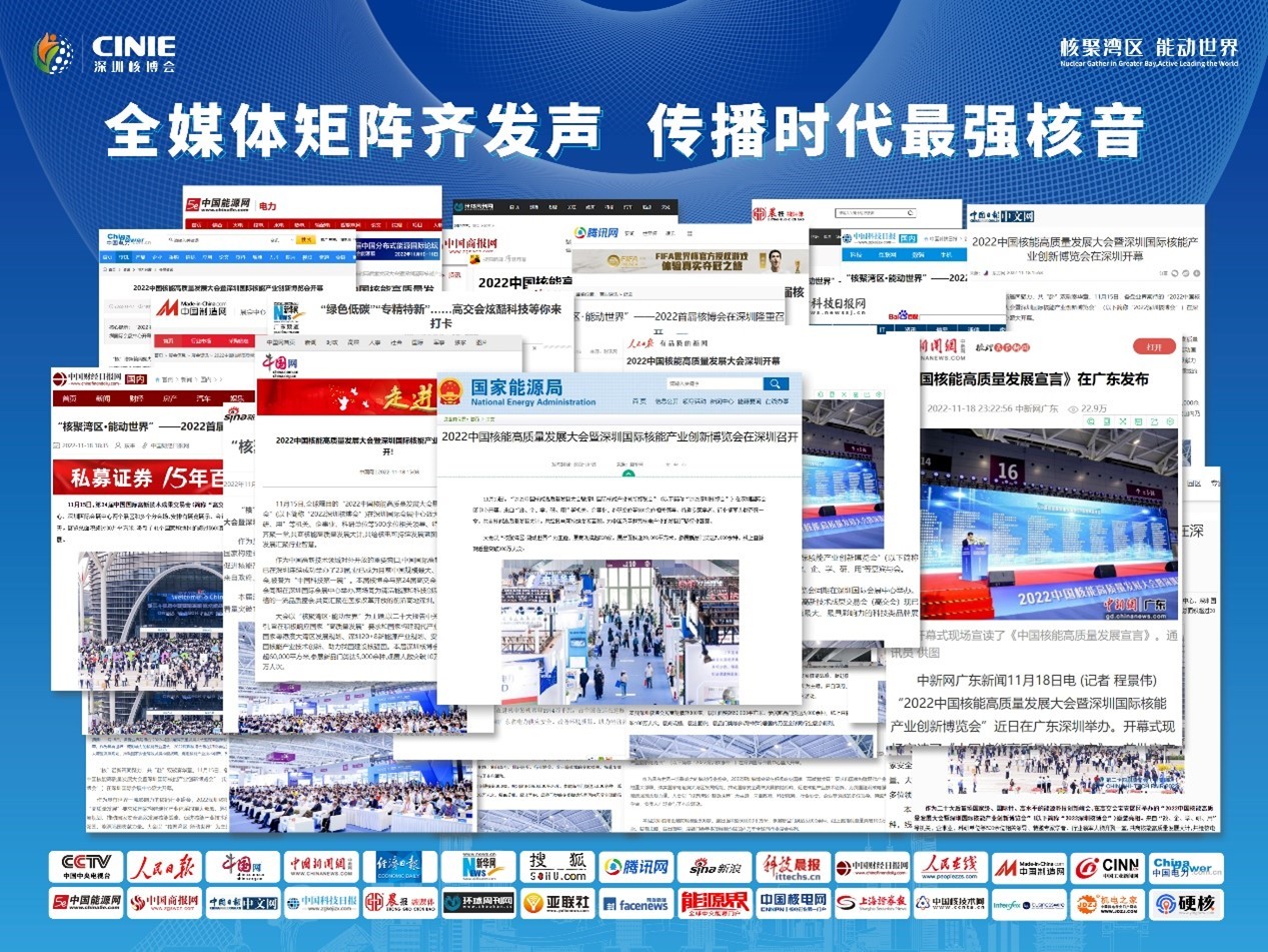 截止到目前,2022深圳核博会的成功举办,已获得了人民日报、新华社、中央电视台、经济日报、中国新闻网、中国日报、中国网、中华网、中国电力报、上海证券报、腾讯、新浪、搜狐等百余家国内权威媒体的全程关注和持续报道并广泛传播,形成了强大的行业影响力和一流会展品牌美誉度。