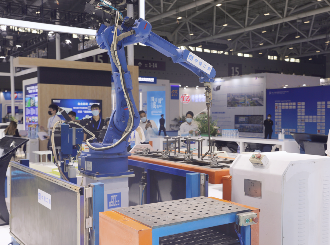 智能建造推动核电“智”造。现场展出的“埋件焊接机器人”由中建二局研发,主要针对核电项目核岛施工中标准预埋件数量居多、焊接工作量巨大这一施工难题,该设备整体由焊接机器人和固定工作台两部分组成,能够实现自动定位、智能焊接。相比人工焊接,该设备的应用效率提升了三倍,大大降低了对焊工的需求。