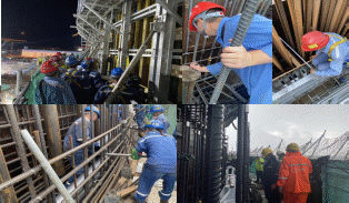 自2021年7月16日3RC第1层结构正式启动,历经16个月施工周期,完成混凝土浇筑近30次,浇筑总量超10万方。3RC是圆筒形钢筋混凝土结构,其筒体共有22层。整体结构不仅包括标准层,还包括设备闸门、人员闸门及应急闸门等重难点区域,贯穿件、预埋件多,且精确度高。整体施工过程中存在工程量大、周期长、跨度大,安全管控风险高、质量管控任务重等特点。
