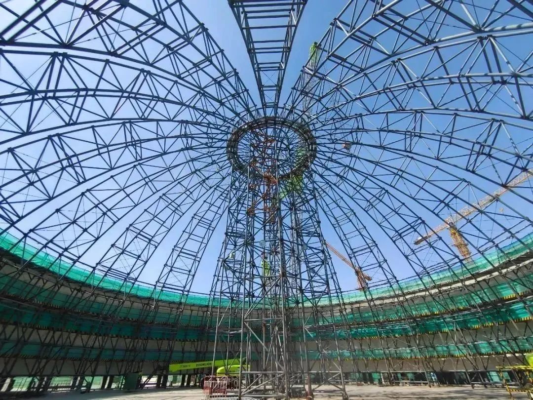 内穹顶位于核岛顶部,整体结构形状为半圆形,重约360t,内直径为46.8m,内侧高度为23.4m,该物项是核电站第三道安全屏障的关键组成部分,在保障反应堆厂房完整性和密封性,实现固有安全特性等方面具有重要意义。