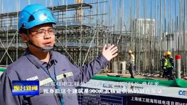 山东核电工程处常规岛施工科副科长曲付龙:我身后这个建筑是900兆瓦核能供热的联合泵站,联合泵站主要的设备就是我们对外供热的一些循环水泵,水处理设备,还有控制系统,都布置在这个厂房内。