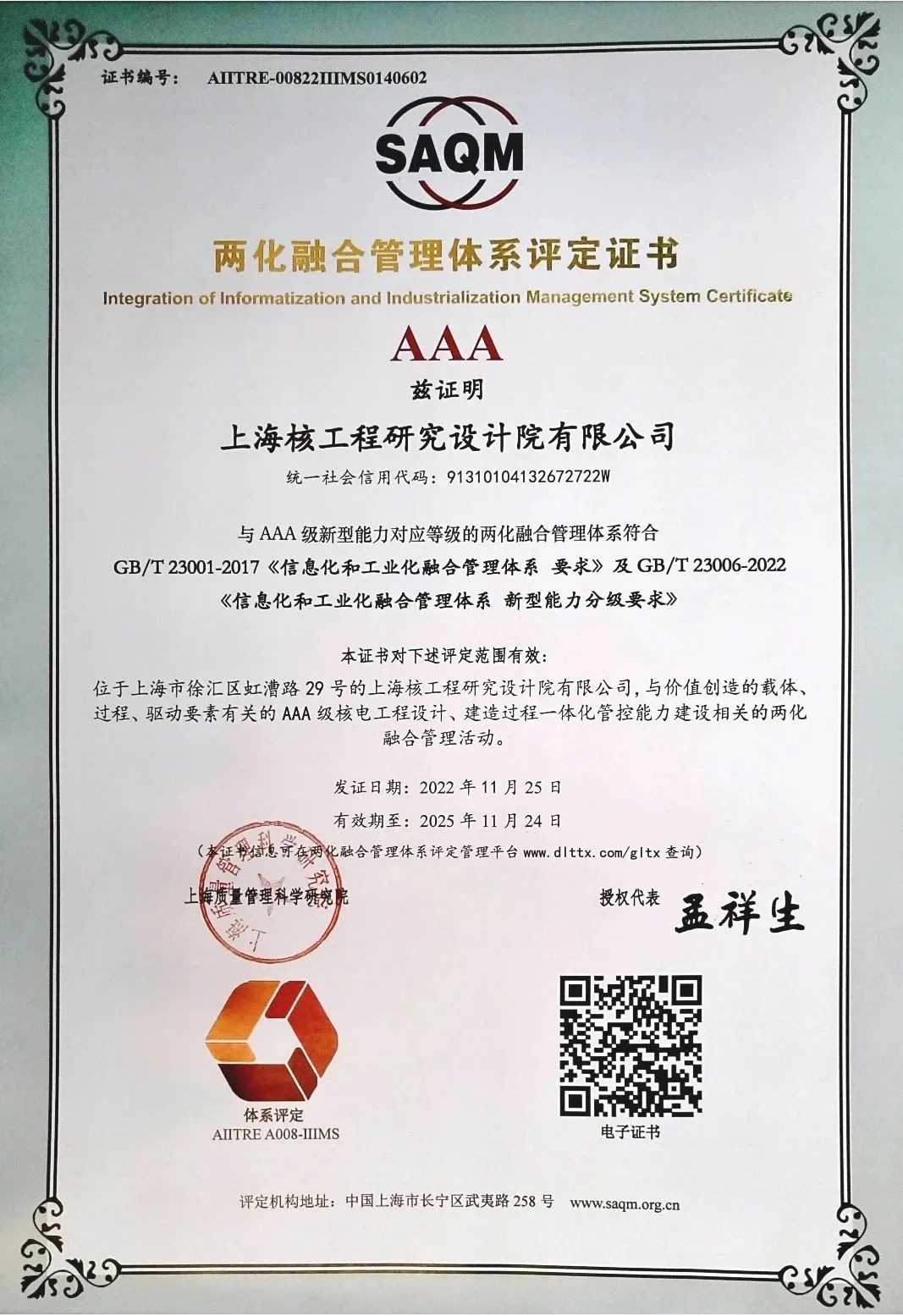 近日,上海核工院顺利通过国家工信部两化融合管理体系专家组审查复核及公示,获得两化融合2.0版体系贯标的AAA级认证。