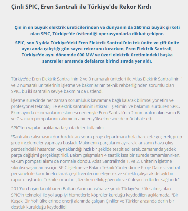 △《国家电投在土耳其艾伦电厂打破记录》在土耳其杂志《投资》刊发记录
