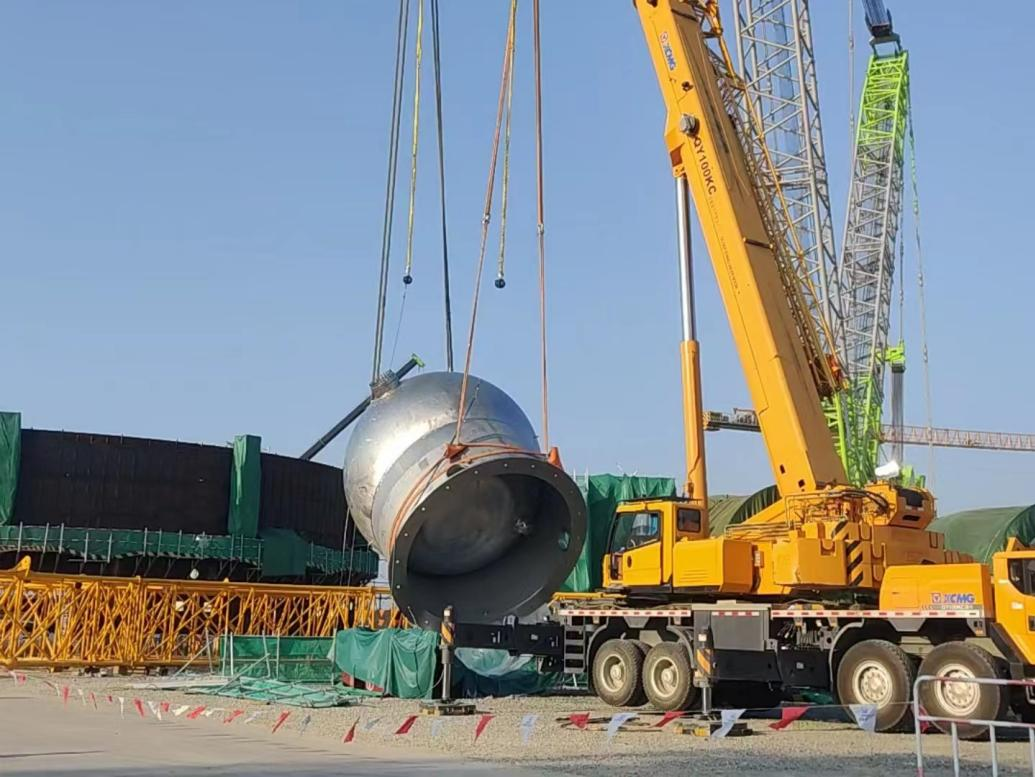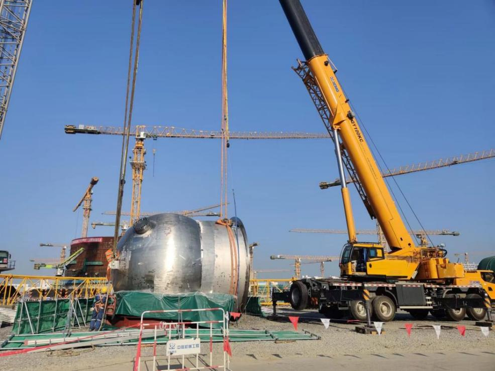 2022年12月14日18时36分,华能海南昌江核电二期项目4号机组首台安注箱顺利吊装就位,拉开了4号核岛大件设备吊装的序章,为后续反应堆核岛土建施工及安装创造了有利条件。