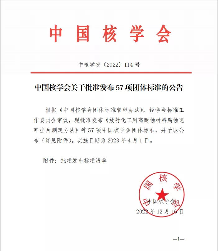 近日,中国核学会发布公告,批准发布57项团体标准,其中包括由中广核达胜加速器技术有限公司(简称“达胜公司”)主编的《电子束处理医疗机构污水技术规范》(T/CNS 88-2022)。根据公告,该技术规范将于2023年4月1日起正式实施。