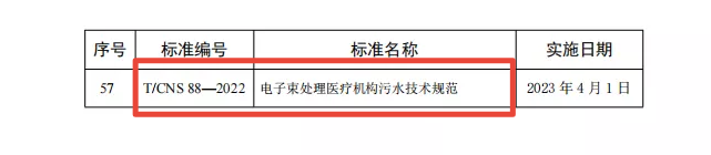 该技术规范是我国电子束技术在医疗机构污水处理领域的首个技术规范,当中规定了电子束处理医疗机构污水的技术、装置、工艺流程设计、过程控制和质量控制、污水排放、运行维护和管理、应急管理和事故处理等方面的要求,对于进一步推广电子束技术在医疗机构污水处理领域的应用具有重要作用。