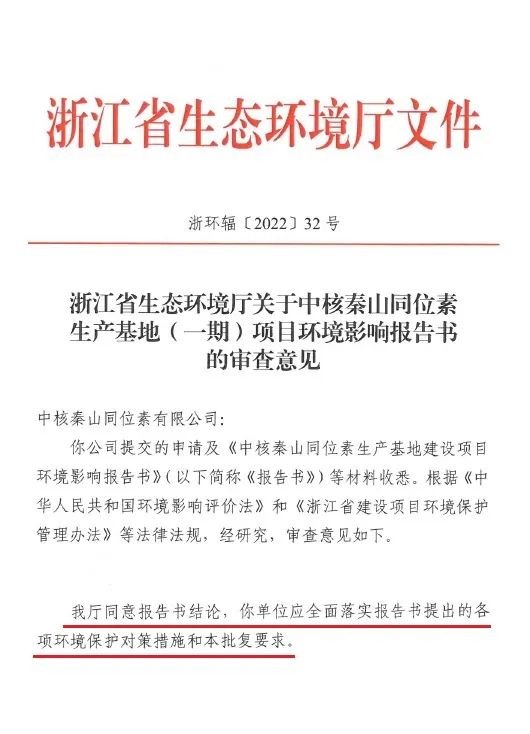 近日,浙江省生态环境厅批复了中核秦山同位素生产基地(一期)项目环境影响报告书,项目正式进入全面建设阶段。
