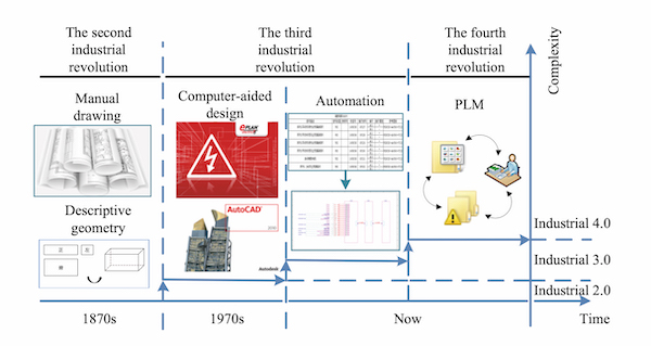 随着工业革命的发展,工程设计过程,经历了从手工绘图到计算机辅助自动设计到产品生命周期管理的各个阶段。