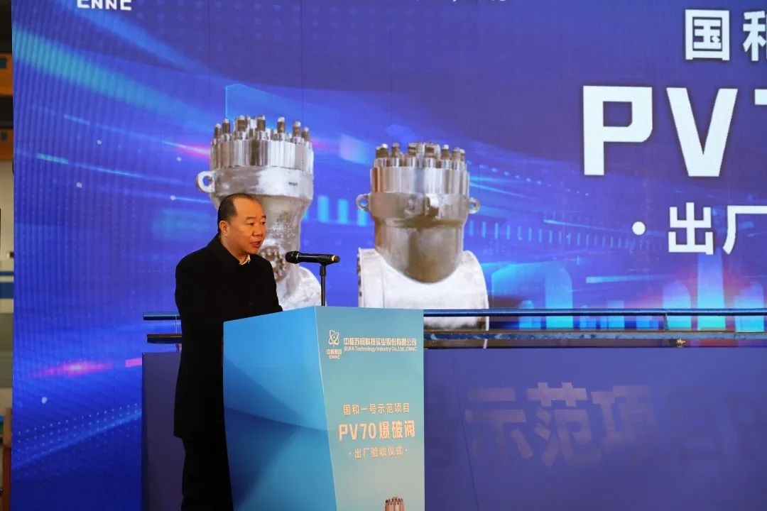 据中核科技党委书记、董事长彭新英介绍,爆破阀是三代核电技术CAP系列独有设备,采用独特的火工品驱动方式,该阀具有技术难度大,可靠性要求高等特点。