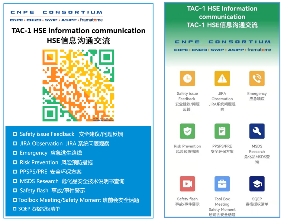 为使中方员工了解法国安全文化,熟悉ITER现场安全规章制度,使员工能够方便、快捷、准确获取中文安全信息。ITER项目部中方安全团队利用二维码平台设计小程序,将安全相关信息采取中英双语在小程序中分类展示。小程序包含安全问题反馈及关闭管理、风险预防措施、安全环保方案、事故事件警示、安全话题以及营地人员外出申请登记、PPE和防疫物资发放登记等模块。