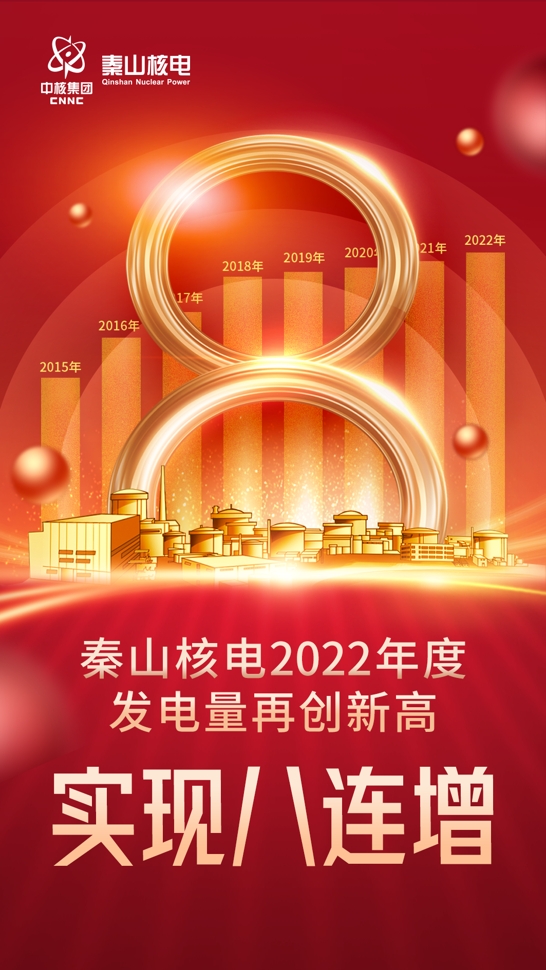 至2022年12月30日7:40,秦山核电又交出一份闪亮的运行成绩单:2022年发电量突破上年度发电量,再次创造新纪录,自全面建成投产以来实现年度发电量“八连增”,能力因子和负荷因子连续6年创造“双90”的卓越运行业绩。